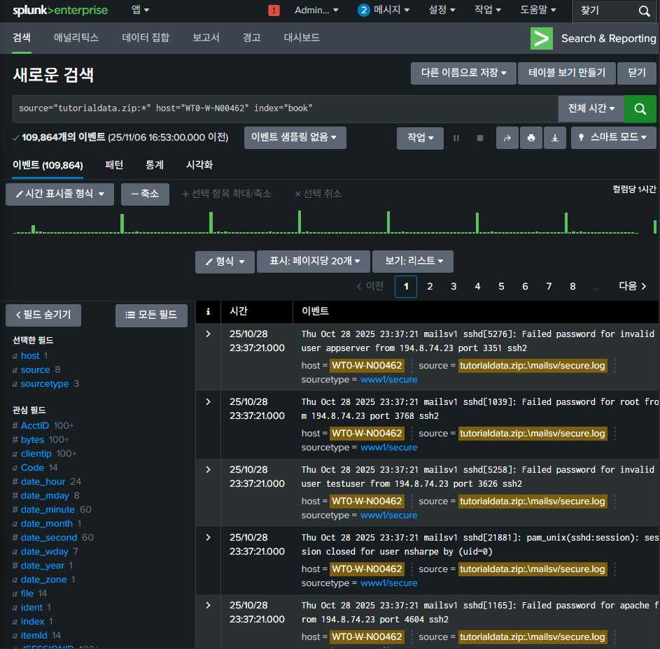 ※ tutorialdata.zip은 원본 로그가 계속 변경되므로 다운로드 하는 시점에 따라 다른 로그 내용이 포함