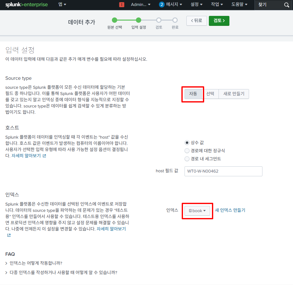 - tutorialdata는 웹로그 이므로 별도로 지정할 필요없이 자동으로 해도됨.